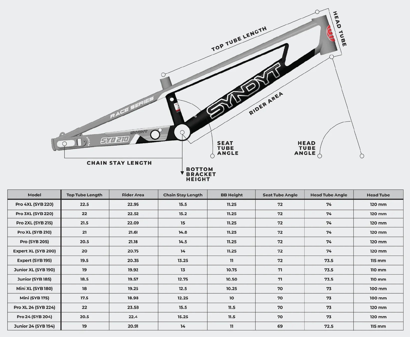 Introducing the SYNDYT BMX Racing Frames, a groundbreaking evolution in BMX frame design that sets a new standard for performance and exclusivity within the SYNDYT community. Crafted from premium 6061 custom handcrafted alloy, these frames embody the perfect balance of durability, lightweight precision, and an unparalleled ride quality. Employing state-of-the-art hydroforming technology and featuring triple-butted tubes, our frames deliver optimal power transfer and responsiveness, enhancing your overall riding experience. Designed with rider convenience in mind, our frames come equipped with integrated chain tensioners for easy and precise adjustments, eliminating the hassle of traditional setups. The flexibility of multi-size rear axle choices allows riders to customize their BMX for various tracks and riding styles, putting control firmly in your hands. Embracing Oversize Technology, our frames boast the stiffest tube junctions achievable in an alloy frame. This engineering choice maximizes power transfer, providing riders with the competitive edge needed to dominate the track. The SYB BMX Racing Frames aren't just a product; they represent a commitment to delivering a superior riding experience that pushes the boundaries of what's possible in BMX racing. Join the SYNDYT revolution and elevate your BMX game with these meticulously crafted frames – the new benchmark in racing excellence.
